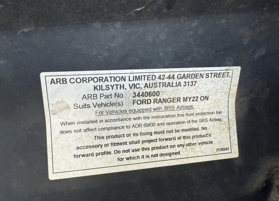 2022 onwards Ford Ranger ARB bullbar